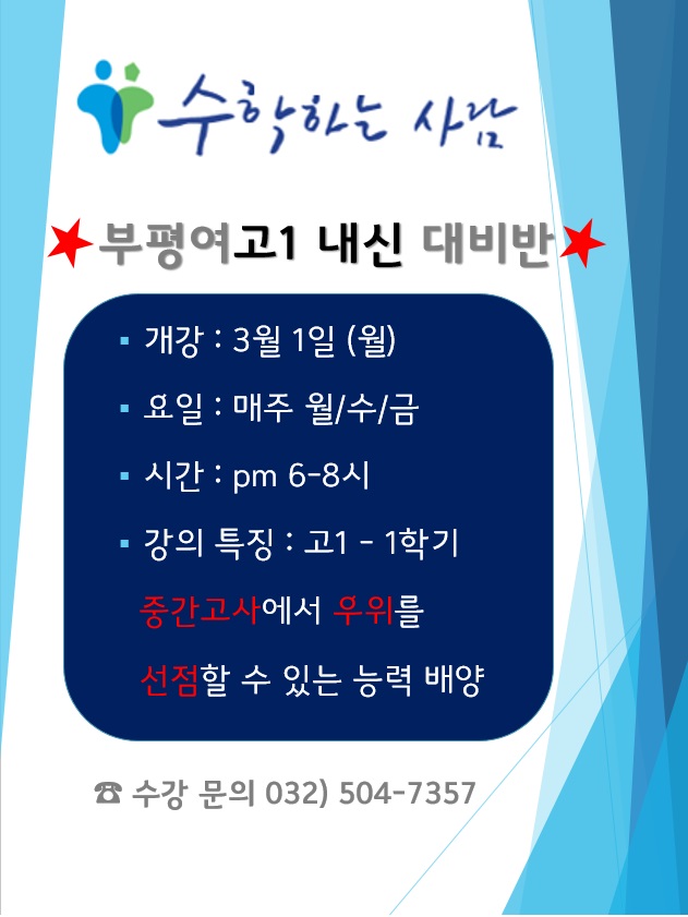 부평여고 외 타 학교 내신 및 중간고사/기말고사 대비반 관련 문의는
